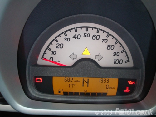 The drive was very comfortable and you could be forgiven for thinking that the MHD is a regular petrol fortwo. However, when slowing down to a stop, the revs fall to 1000 before the engine cuts out. As the car does this, the green "ECO" light stays on. This shows the driver that the car is still on, even though the engine has stopped. The engine will remain like this whilst the brake is applied.