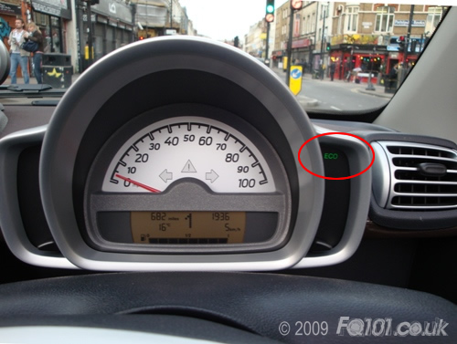 Upon starting the car, a yellow "ECO" LED illuminates on the right hand side of the dash. This indicates that the function is activated. The green "ECO" LED illuminates once the "ECO" function is ready. This is explained later.