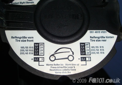 If your car is standard, it is always handy to have the tyre pressures conveniently located inside the fuel flap. However, if you have changed your wheels, then you may be left wondering what the pressures are. The following are a collection of tyre pressures accross the range: