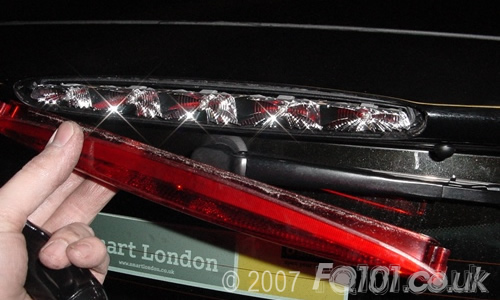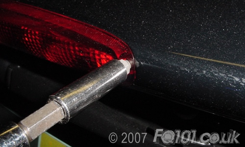 Using a T15 bit, unscrew the two fixings that hold the brake light cover in place.