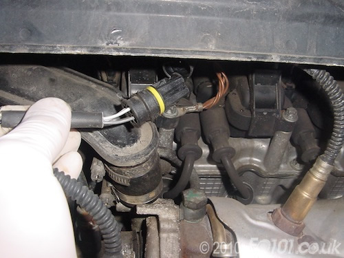 To disconnect the sensor, trace the wiring up to its connector. You will find that this is clipped in to the wiring ducting, so simply unhook this and unplug. If the connector is dangling loose, make sure that you clip it back to the wiring ducting when you come to refit the exhaust. This will prevent the wiring from burning on the side of the exhaust.