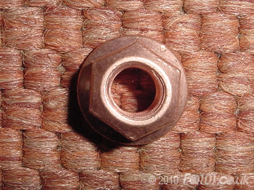Note that you should always use try and use new turbo studs when changing the exhaust. If you look closely at the replacements, the brass nuts are slightly oval. They deform as you turn them onto the stud, making them a one time fit! If one stud is stuck fast in the turbo, leave it. Don't try and force it out.