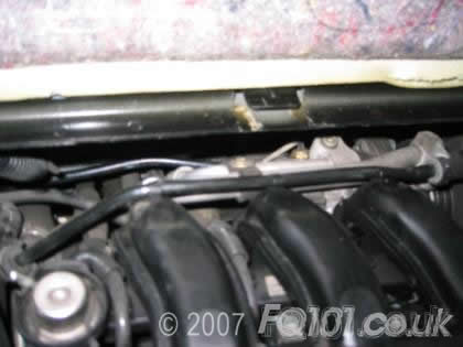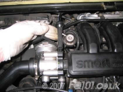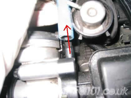 If you have air-conditioning, you have even less space to manoeuvre, but the breather pipe connects to the crankcase just to the offside of the a/c pipes.
