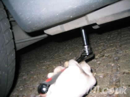 Now slacken the corresponding engine subframe bolt on the rear, and slowly lower until you have room to get your hands in.