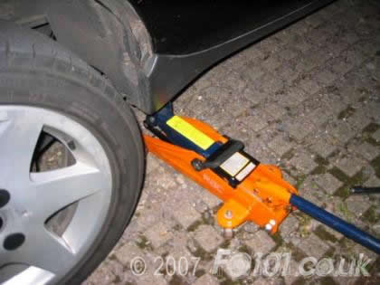 Now slowly jack up the car until the rear wheel lifts off the ground.