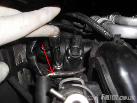 Remove the vacuum pipe from the FPR, and pull the breather pipe out of the way.
