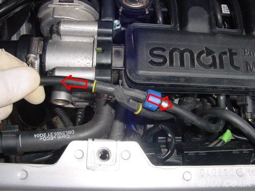 Remove the Y-section. Ensure that the one way valve stays on the pipe leading to the inlet manifold.