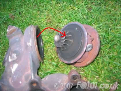 Take the opportunity to check the blades for signs of pitting; the turbine wheel should be okay, but pay close attention to the compressor wheel.