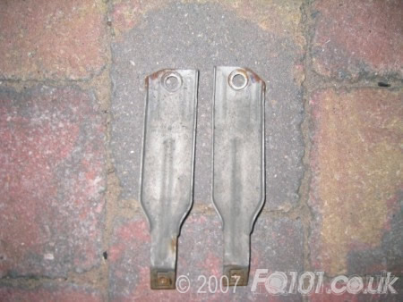 Then grind the corners off each (as per photo), as this will allow you to bolt them back at an angle so they will not be seen when the rear panel is refitted (see below).