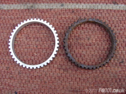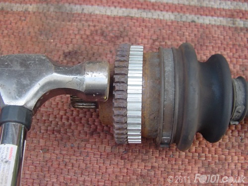 Offer up your new ABS ring. If it doesn't wedge easily on the wide part of the drive shaft, remove and give the surface another clean. Use a metal file to take the surface down slightly. Don't go mad though! You want the ABS ring to be held in place with a good 'interference fit'.