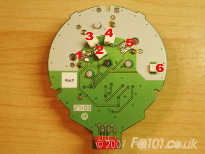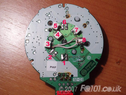 Again, de-solder the LEDs from the PCB, leaving LED 2 if you want to keep a red needle. DO NOT de-solder LED 6, this is the redline illumination.