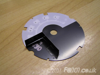 Take the black card and cut a strip, leave a tab that can be folded at 90 degrees to the strip for securing to the back of the dial face, secure with some double sided tape.