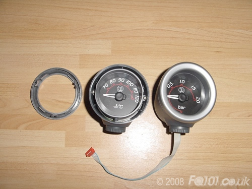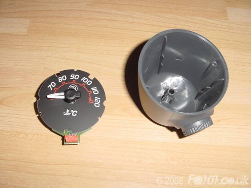 When complete your boost gauge should look similar to the pic above, re-assemble and go and test it in the car, you do not need to plug the temperature gauge in, or secure the pod to the base for testing.