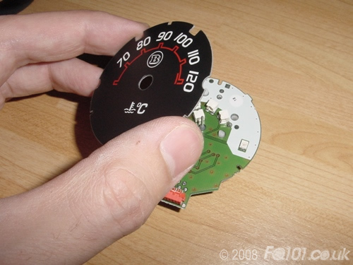 The dial faces will simply lift off the spindle to reveal the LEDs on the PCB.