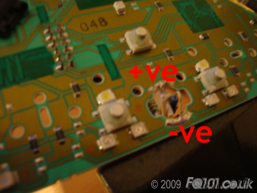 We have found that with a bit of patience and care, you can make an effective light source from two SMD PLCC-2 LEDs that you may have left over after replacing your LEDs in your triangle, radio and buttons.