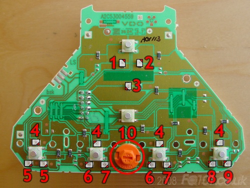 Note: Single and two button triangles still require 4 backlight LEDs even though some positions are redundant. You will need to replace these as well to ensure correct voltage across all LEDs.