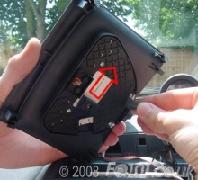 Before replacing the LEDs, the safety triangle needs to be dismantled. Lever the front of the triangle from the centre console in order to free it and unplug the wiring on the back.