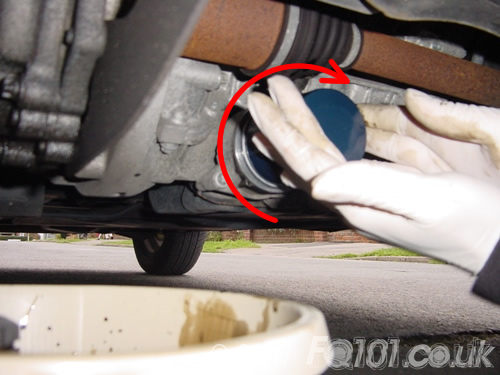 Start by removing the existing filter with a 27mm socket. Ensure that you have a tray under the car to catch the oil.
