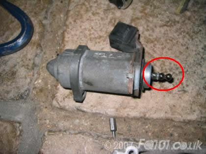 Under the cover, you will see the internal workings of the actuator. The following picture shows the actuator parked in the 'engaged' position. The pin is retracted fully so it is not pushing on the clutch release arm. The clutch will be engaged as a result.