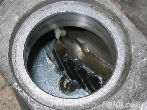 Looking inside, you can see the ball joint socket. If your actuator has become lethargic in operation, flood this with grease.