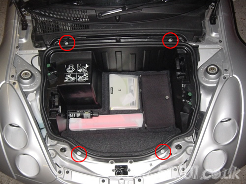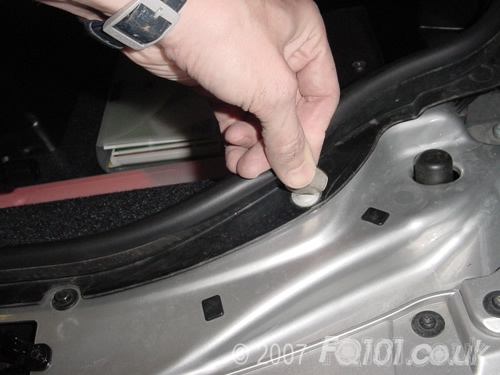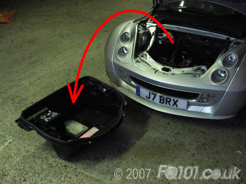 In order to access service items such as the front lights, brake fluid and battery, you need to remove the bonnet bin.