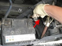 Use a 10mm spanner to remove the negative battery connection.