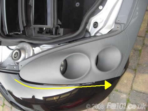 Remove the three securing bolts on each side of the front wings, the back two bolts can be hard to access as they are obscured by the bonnet so a stubby screwdriver will come in handy.