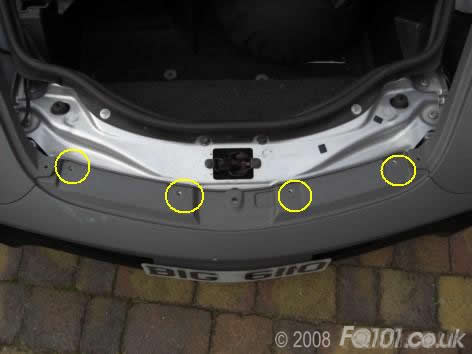 On each side of the car, where the back edge of the arch meets the side skirt there is a Torx bolt (shown below), these both need removing.