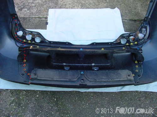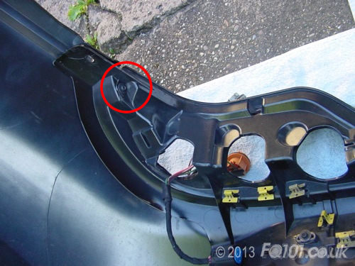 Remove both inserts from the rear section. This can be fiddly. Unclip the lugs circled below from the insert. At the same time, the insert needs to unhook from the section arrowed.