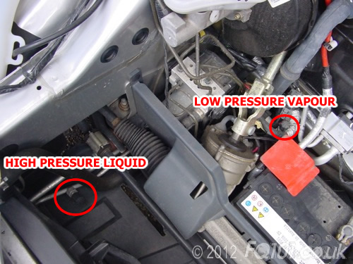 There is nothing unusal about the airconditioning system on the Roadster. However, when it comes to replacing the refrigerant, some garages struggle to locate the system filling points. This guide shows where they are located on a right hand drive car. It may be useful to print this off and take it with you when you go for a refill.