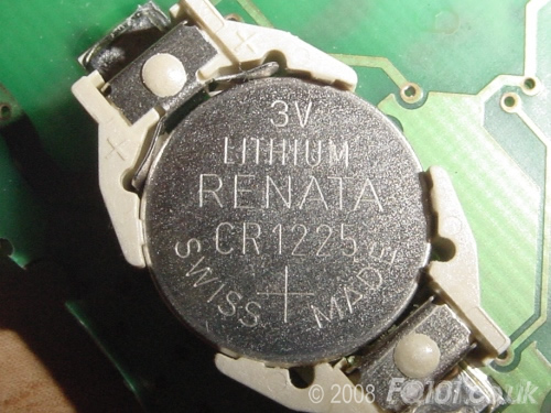 Remove the battery and replace with another Lithium CR 1225 cell.