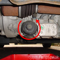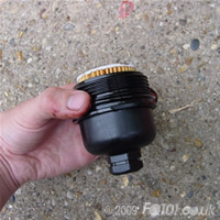 While the oil is being drained, undo the oil filter cover with a 27mm socket. Ensure that there is something underneath to catch the oil. An old biscuit tub is ideal.