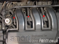 Now turn your attention to the top plugs. Unclip the leads from the fuel rail: