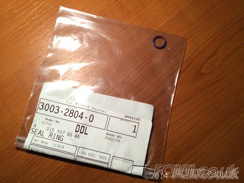 This is the larger of the two sealing rings which fit between the condenser (radiator) and the air conditioning pipes. You will also need Aircon Sealing Ring (S).