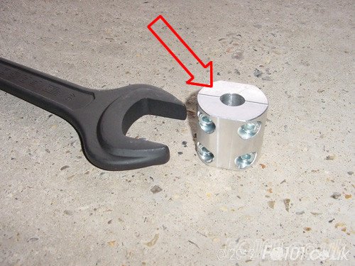 This clamp can be fitted around the shaft of the shock absorber to provide some grip when attempting to free the suspension top mount nut.