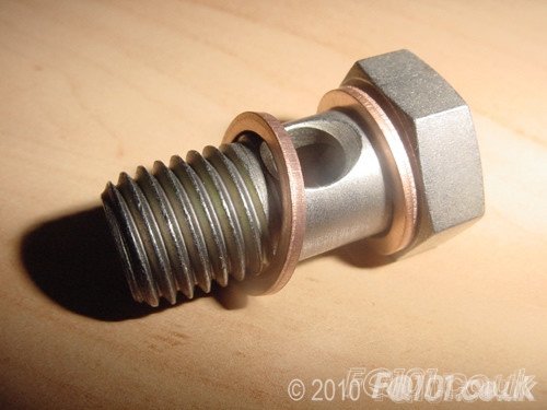 This banjo bolt fits at either end of the two turbo coolant water pipes. It is comes complete with two copper washers.