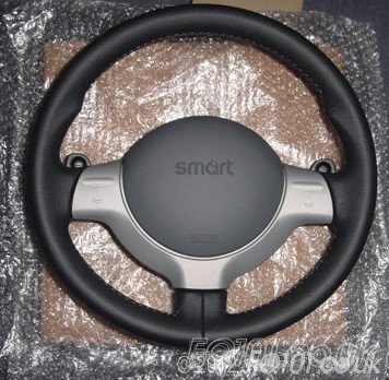 Sports steering wheel with paddles for gearshift. It has a dark grey horn bar and is the later 3-spoke model.