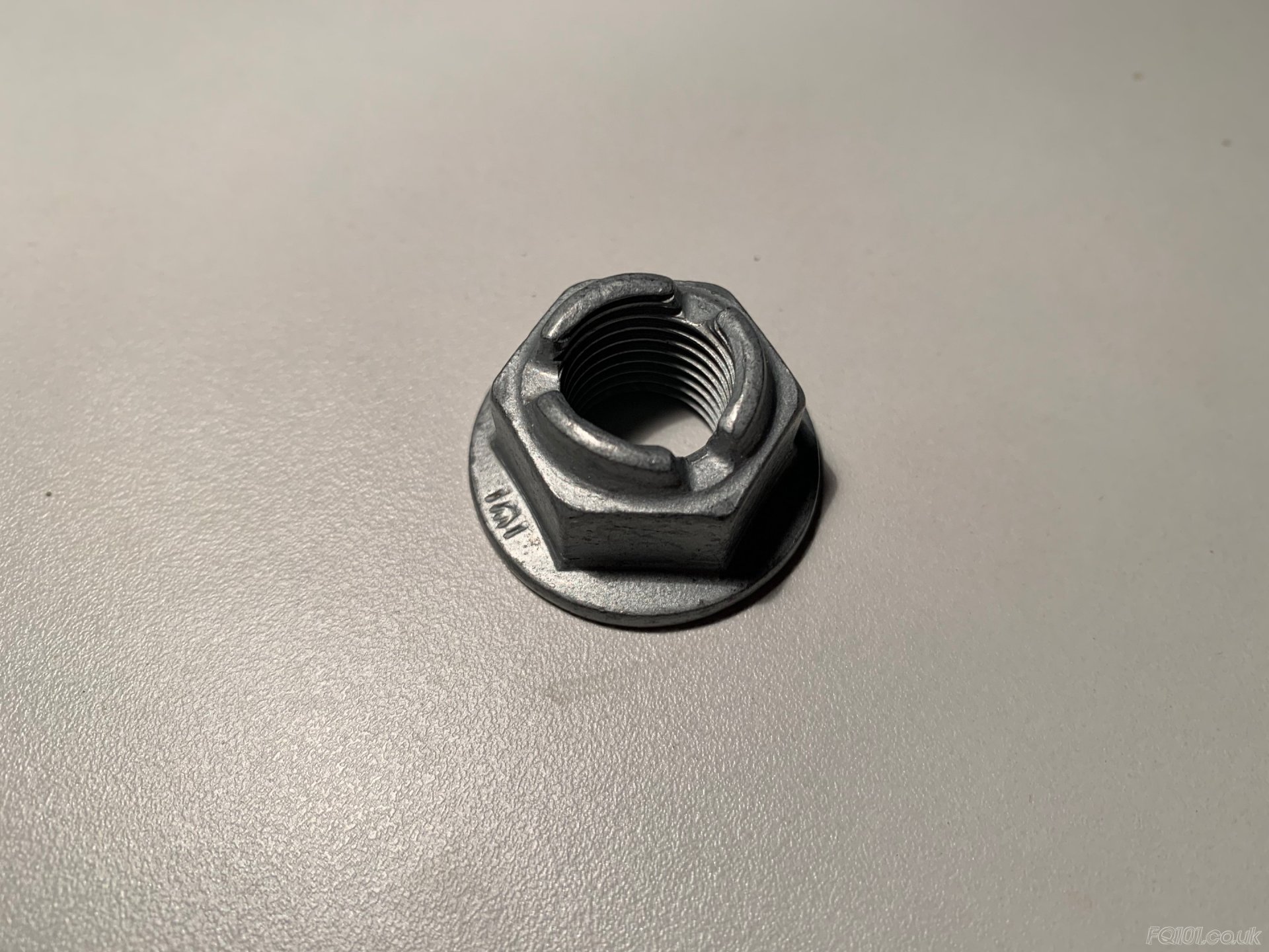 This is the top nut which secures the front suspension shock to its top plate. They are prone to seizing if they are not properly greased.